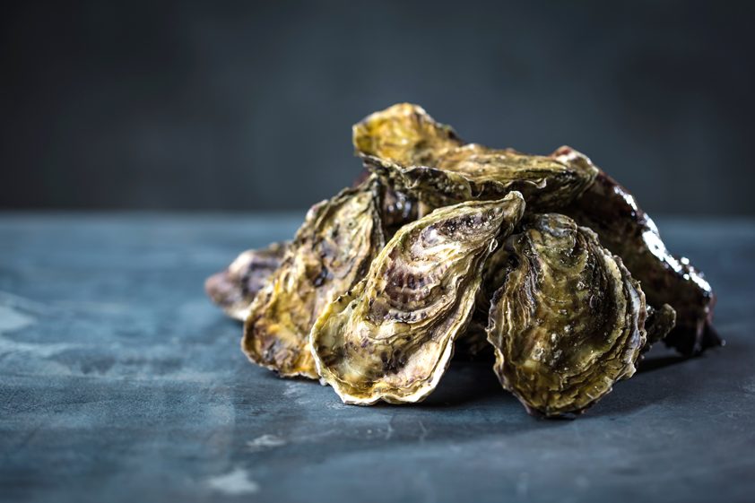 Die Gurken mit den restlichen Blättern des Korianders vermengen und wiederum auf den Austernschalen verteilen.