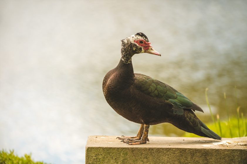 Die Hautseite der Entenbrüste kreuzförmig einschneiden ohne in das Fleisch zu schneiden. Die Pfanne auf mittlerer Hitze vorheizen und den Backofen auf ca. 170 C vorheizen. Die Entenbrüste mit der Hautseite in die Pfanne geben und die Temperatur etwas erhöhen. Nach ca. 5 Minuten, wenn die Haut schön gebräunt ist, die Brüste umdrehen. Eine angedrückte Knoblauchzehe sowie einen Zweig Rosmarin und Thymian hinzugeben. Für 2 bis 3 Minuten weiter garen.