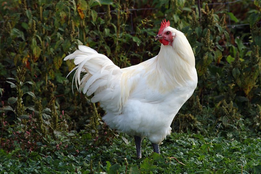Nun eine ½ Zitrone, ½ Knoblauchknolle und 1 Zweig Rosmarin in die Bauchhöhle geben und mit einen Holzspieß zustecken. Keulen zusammenbinden und Hähnchen auf die leicht gefettete Fettpfanne des Backofens legen. Im vorge-heizten Backofen (E-Herd: 200 °C/ Umluft: 175 °C/ Gas: Stufe 3) ca. 1 Stunde und 15 Minuten garen.