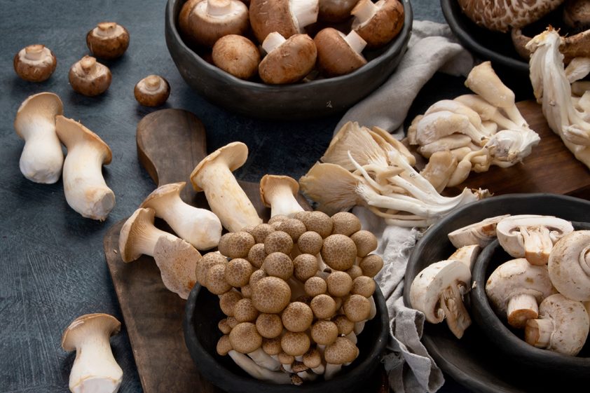 Die geputzten Edelpilze in gleichgroße Stücke schneiden und den Knoblauch fein hacken.