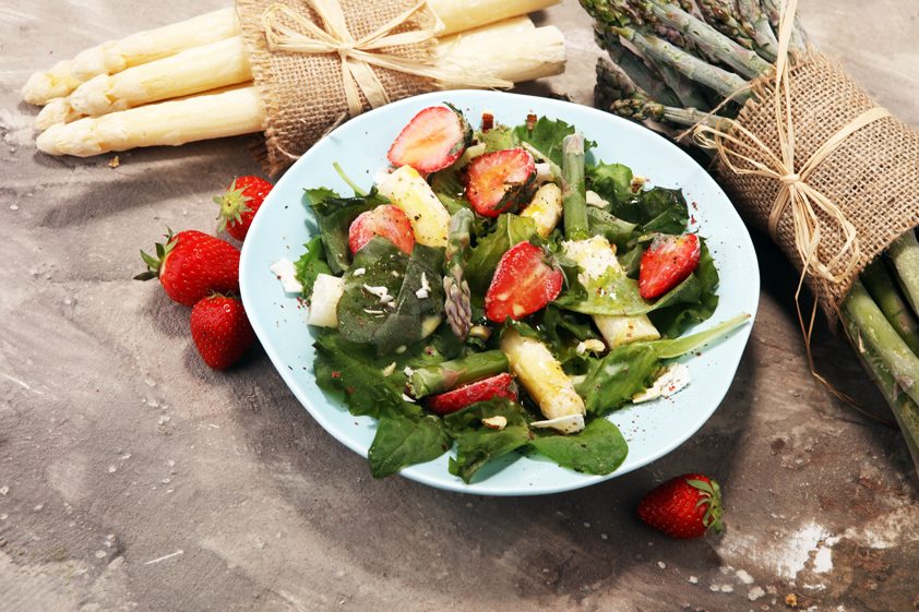 Für das Dressing verrühren Sie das Balsamico-Essig mit dem Spargelfond, dem Honig und dem Senf. Rühren Sie dann langsam das Olivenöl ein bis das Dressing eine samtige Bindung erhält. Geben Sie die gehackte Petersilie hinzu und schmecken alles mit Salz und Pfeffer ab. Vierteln Sie die Erdbeeren und mischen diese zusammen mit dem Rucola unter den Spargel. Geben Sie das Dressing dazu und schwenken alles gut durch.