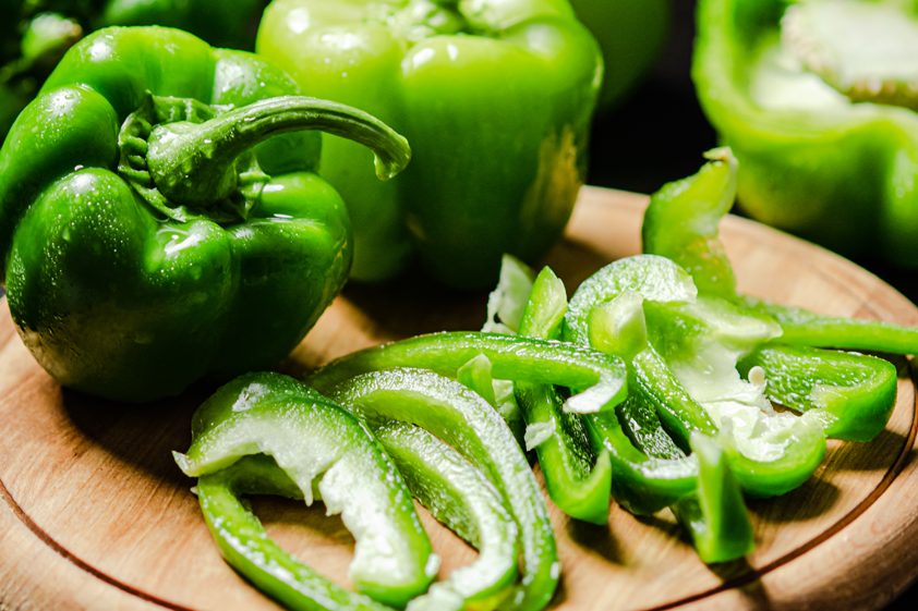 Zwiebeln abziehen und Kartoffeln schälen. Paprika und Zucchini waschen und putzen. Das Gemüse in Würfel schneiden.