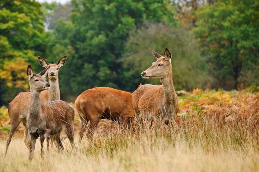 Die Hirschkalbskeule in einem Bräter kurz von allen Seiten anbraten und herausnehmen. Den Bräter erneut erhitzen und das geschnittene Gemüse darin rösten. Das Tomatenmark hinzufügen, kurz mitrösten, mit einem Drittel des Rotweins ablöschen, einkochen lassen, ein weiteres Mal mit Rotwein ablöschen und wiederum einkochen lassen. Das letzte Drittel des Weines hinzufügen, einkochen und mit einem Glas Wildfond und der Gemüsebrühe aufgießen.