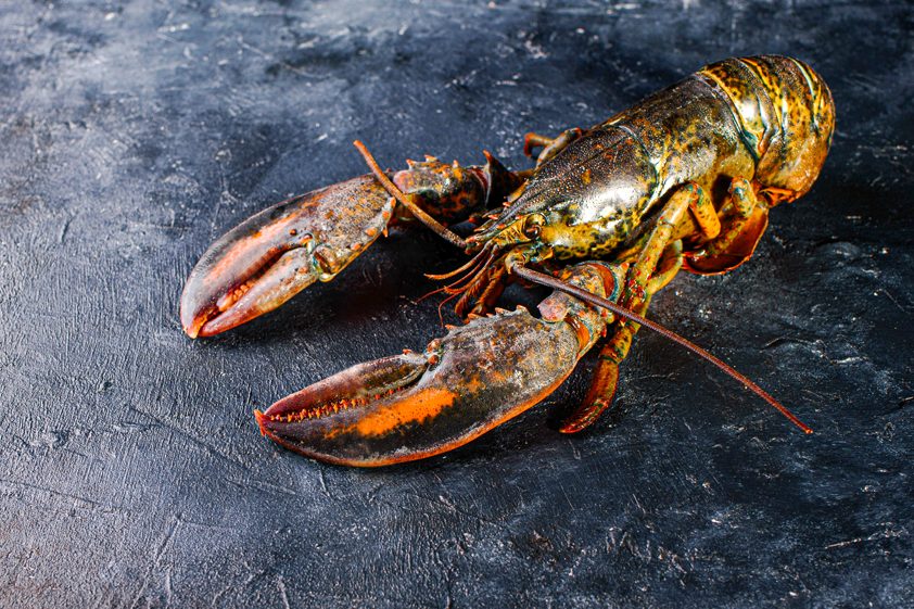 Den Hummer der Länge nach halbieren und Olivenöl in einer großen Pfanne erhitzen.
