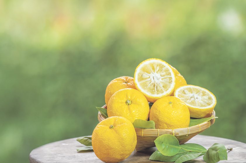 Die Yuzu-Zitronen auspressen. Den Saft auffangen und mit Pfeffer und Meersalz abschmecken. Anschließend den Honig und das Olivenöl hinzufügen sowie die gehackte Frühlingszwiebel, den Dill und Lachs.