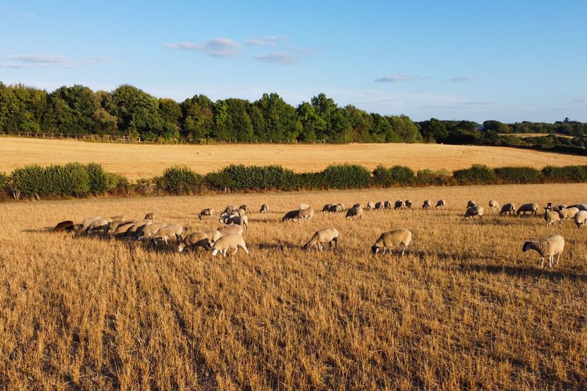 Den Backofen auf 180° C vorheizen. Das Lammfleisch mit Salz & Pfeffer würzen. Zwei Drittel des Olivenöls in einer Pfanne erhitzen und das Fleisch von beiden Seiten gut anbraten. Die Knoblauchzehen halbieren, zusammen mit dem Thymian, dem Rosmarin und 2 Zweigen Salbei zum Fleisch geben und mit braten.