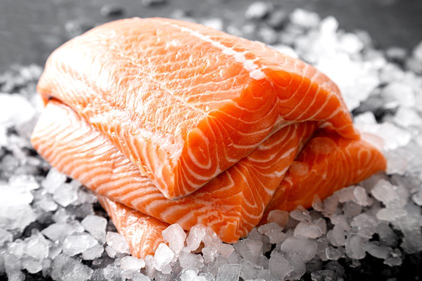 Den Backofen auf 90° C Umluft vorheizen. Die Lachsstücke rundherum mit dem Rauchsalz einreiben und ca. 10 bis 15 Minuten einwirken lassen und anschließend mit einem Küchentuch vorsichtig trocken tupfen. Das Rauchpaprikapulver mit der geklärten Butter verrühren und die Lachsstücke auf der Oberseite und den Seitenflächen einpinseln.