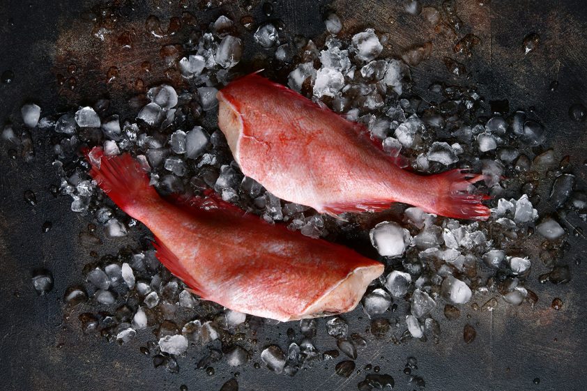Jetzt die Rotbarsch-Loins in ca. 2 bis 4 cm dicke Scheiben schneiden, abtrocknen, salzen und auf einer Seite mit dem mittelscharfen Senf bestreichen. In der Zwischenzeit eine Pfanne bei mittlerer Hitze vorwärmen und den Boden leicht mit Öl bedecken.