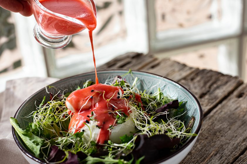 Nach Belieben mit fein geschnittenem Basilikum verfeinern. Dazu passt gegrillter Schwertfisch.