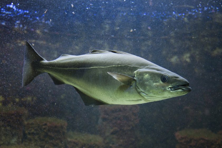 Nun den Seelachs trocken tupfen, salzen, und die Oberseite mit der Zwiebelkruste gleichmäßig, ca. 1/2 cm dick, bedecken. Den Fisch auf ein Backblech mit Backpapier legen und im vorgeheizten Backofen auf der mittleren Schiene bei 180°C Ober- und Unterhitze für 10 bis 15 Minuten garen. Nach Belieben anschließend noch unter dem Grill etwas nachknuspern lassen.