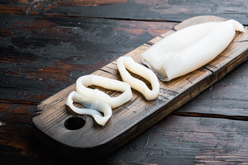 Die Tuben vom Grill nehmen und in feine Ringe schneiden. In einer Schüssel mit Salz, Pfeffer, Olivenöl, Zitrone, gehacktem Knoblauch und Peperoncini marinieren.