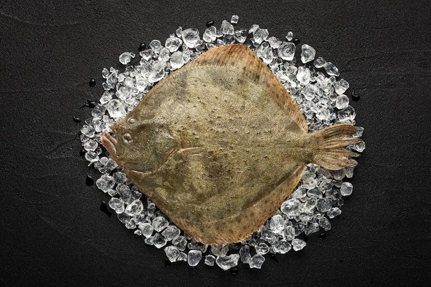 Den Steinbutt von beiden Seiten mit dem Saft einer Zitrone beträufeln und die Haut mit Meersalz sowie schwarzem Pfeffer einreiben. Anschließend die Gewürze etwa 10 Minuten einziehen lassen.